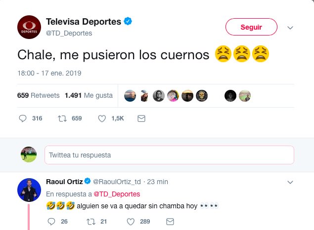- El community manager de Televisa Deportes desahogó una infidelidad en el perfil oficial, aunque posteriormente borraron el tuit, pero eso no fue suficiente para que desapareciera de internet.