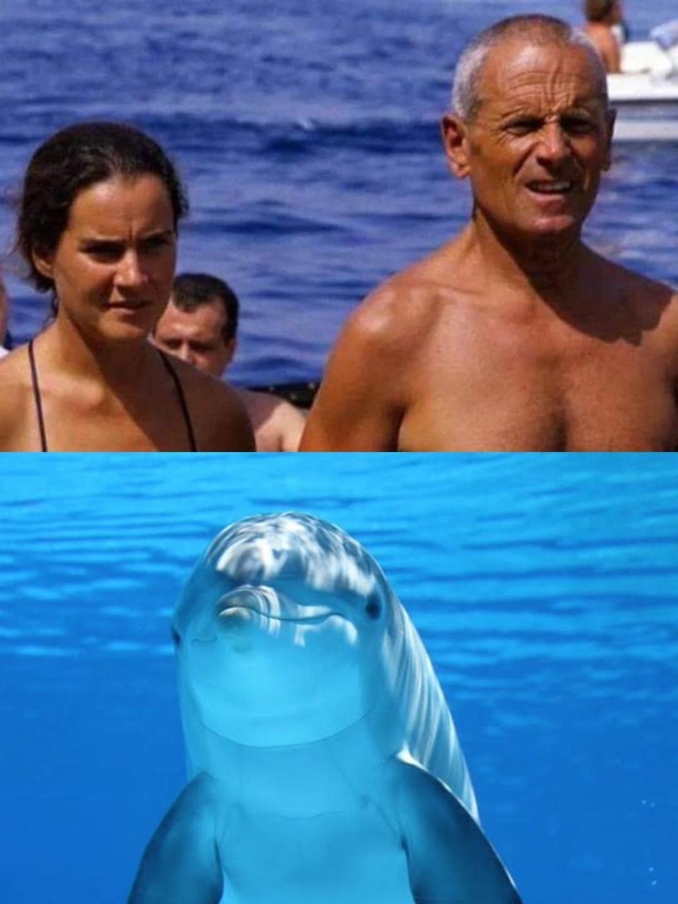 (Un delfín puede permanecer bajo el agua hasta 10 minutos, luego se ahoga). El delfín liberado fue ayudado a salir a la superficie por Enzo, Rosana y el otro delfín, ahí fue cuando llegó la sorpresa: ¡estaba embarazada! El macho los rodeó, y luego se detuvo frente a Enzo, le tocó la mejilla (como un beso), en un gesto de gratitud y luego ambos se alejaron nadando.