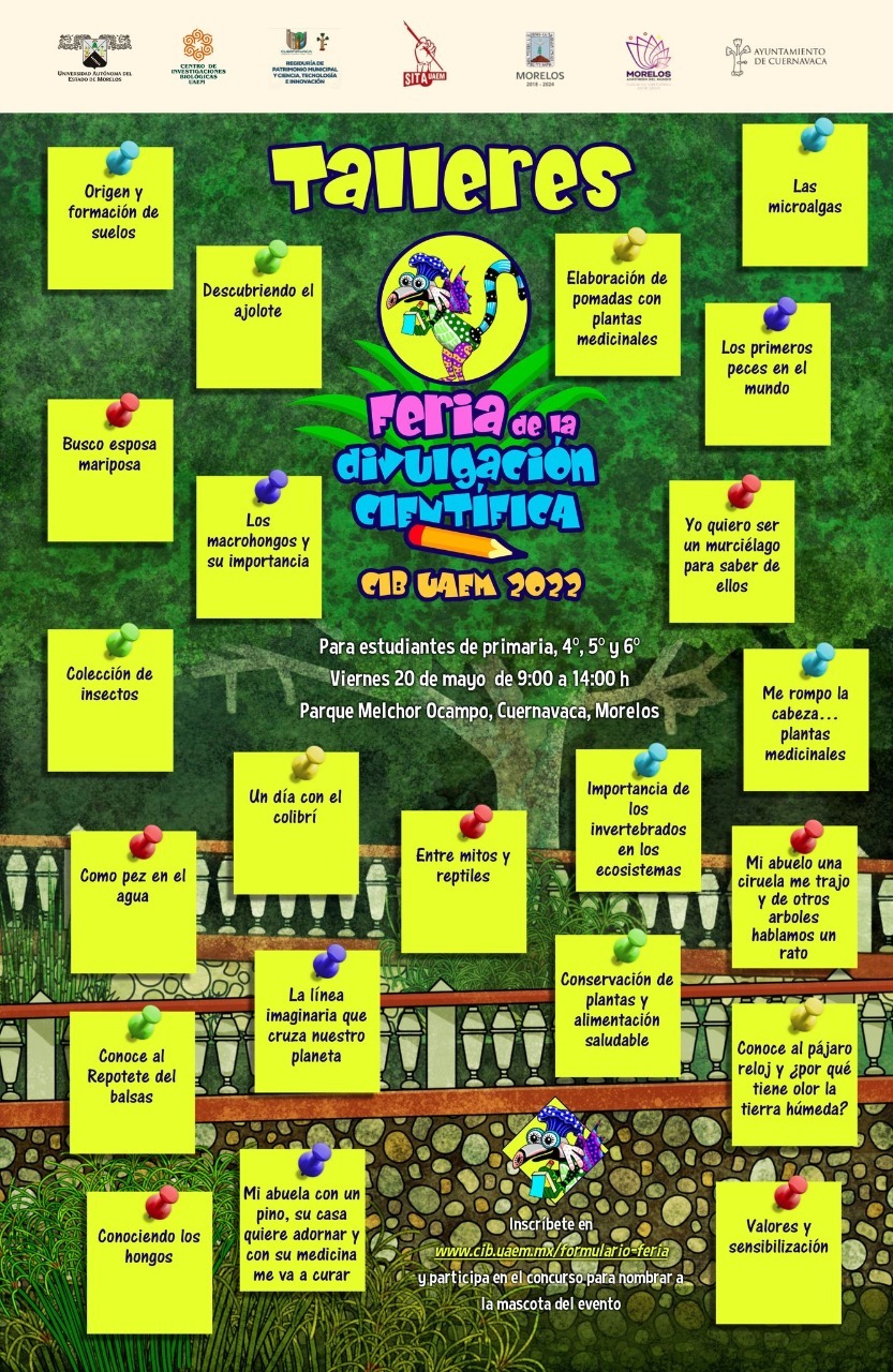 La «Feria de Divulgación Científica» se estará efectuando con el apoyo del Instituto de la Educación Básica del Estado de Morelos (IEBEM). Las personas interesadas en participar pueden inscribirse en la página oficial del Ayuntamiento de Cuernavaca donde se está publicando el link junto con el cartel de actividades que divulgan la Regiduría de Patrimonio Municipal, Ciencia, Tecnología e Innovación y el Centro de Investigaciones Biológicas de la UAEM.