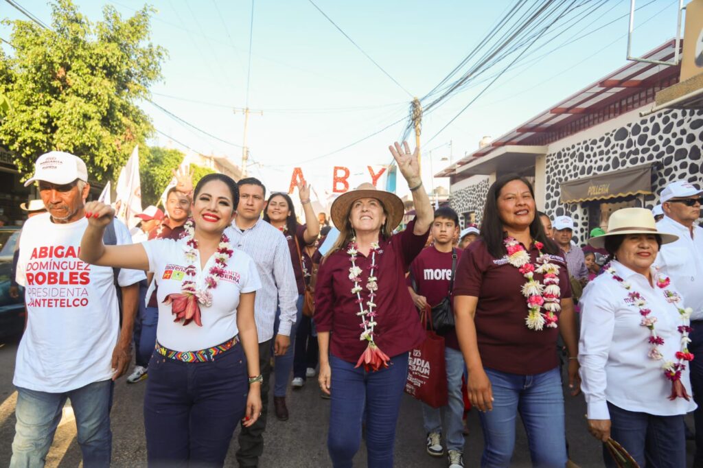 Frente al contingente masivo, Abigail Domínguez, candidata a presidenta municipal de Jantetelco, expuso que las mujeres hoy en día tienen una preparación sólida que les permite llevar gobiernos honestos y con un enfoque transformador: “La estrategia que tenemos en Morena es acercarnos a la población y caminar con los ciudadanos en las calles, las colonias, los poblados, lo que hace que la campaña a la fecha sea un éxito”.
