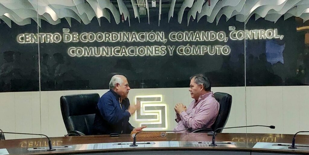 El alcalde Rafael Reyes Reyes y el comisionado estatal de Seguridad Pública, almirante José Antonio Ortíz Guarneros, sostuvieron una reunión de trabajo la mañana de este viernes para verificar el funcionamiento de 32 cámaras de videovigilancia contratadas por el Gobierno con Rostro Humano de Jiutepec e instaladas en el municipio.