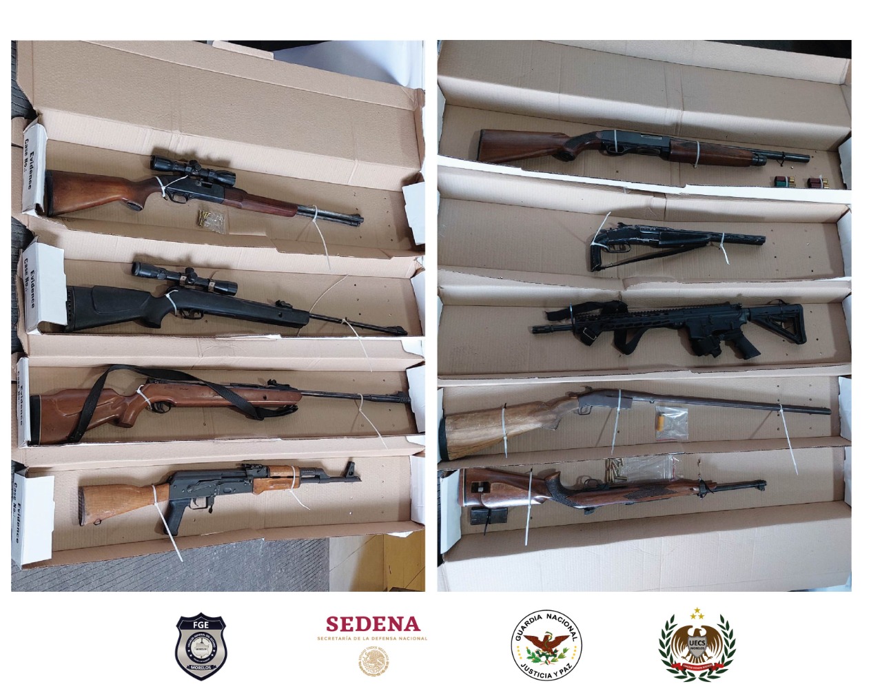 Resultado del despliegue de fuerzas estatales y federales, se realizó el aseguramiento de 18 armas de fuego; 10 largas, 6 cortas funcionales y 2 cortas desarmadas. Se aseguraron una camioneta Mitsubishi tipo Outlander de color gris, con placas de circulación 449-YNY de la Ciudad de México, un vehículo Chevrolet tipo Aveo de color negro con placas de circulación RDT-980-B del Estado de Morelos y un Dodge Charger de color negro con placas de circulación HGS-270-D del Estado de Guerrero, así como ropa táctica y dosis de droga conocida como cristal.