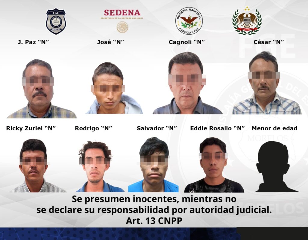 Esta detención se suma a la realizada el pasado 03 de junio cuando fue asegurado un menor de 15 años en el municipio de Cuautla, y el 05 de junio fueron detenidos Daniel “N” alias “Mudo” y Martín “N” alias “Hormiga” en el municipio de Cuernavaca, integrantes de una célula del grupo denominado “Los Capetos” dedicados al secuestro y extorsión principalmente en el municipio de Coatlán del Río, así como detenido anteriormente tres en flagrancia y dos presuntos abatidos durante enfrentamiento armado, con los que suman 9 integrantes de la célula delictiva.