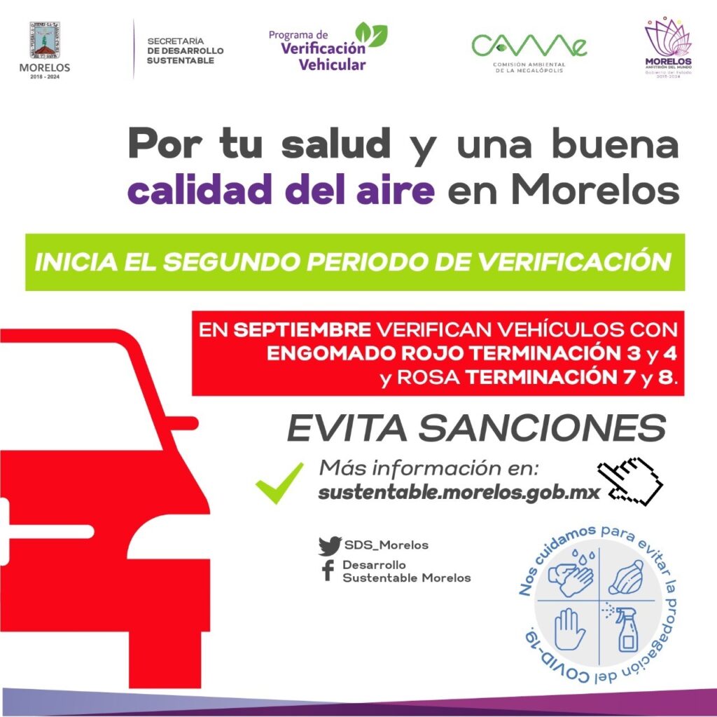 En septiembre verifican los vehículos con hologramas color rojo terminación de placas 3 o 4, así como rosa con terminación de placas 7 y 8, por lo que la Secretaría de Desarrollo Sustentable (SDS) invitó a los dueños y poseedores a cumplir con el Programa de Verificación Vehicular Obligatoria para el Estado de Morelos.