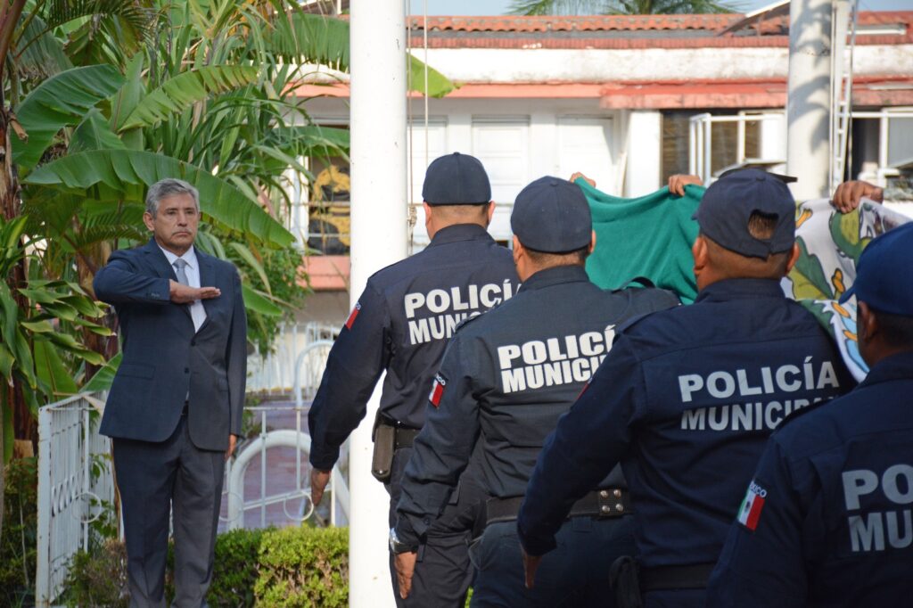 Acompañados de integrantes del Cabildo y Gabinete, servidores públicos, autoridades auxiliares y líderes sindicales, efectuaron el izamiento del estandarte mexicano que fue entregado por una escolta conformada por elementos de la Secretaría de Protección y Auxilio Ciudadano (SEPRAC), para así entonar el himno nacional mexicano que fue dirigido por la banda de guerra de la 24/a Zona Militar, en presencia también de la Guardia Nacional.