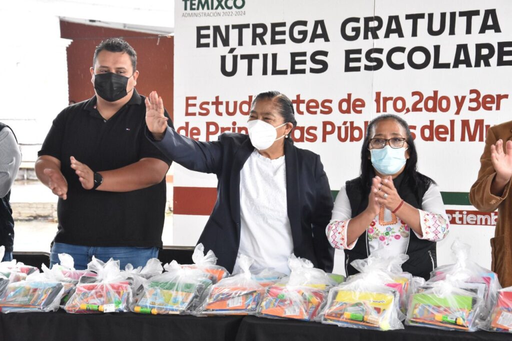 En apoyo a la economía y con el objetivo de incentivar a las alumnas y alumnos en este regreso a clases, la presidenta municipal Juanita Ocampo Domínguez en compañía del síndico municipal Andrés Duque Tinoco, el secretario general del municipio Carlos Caltenco Serrano, así como los que integran el gabinete y gobierno municipal encabezaron la entrega simbólica de útiles escolares gratuitos en la primaria “Gloria Almada de Bejarano”, en la colonia Lomas del Carril, con esta institución educativa se inició la gira para la entrega de estos artículos.