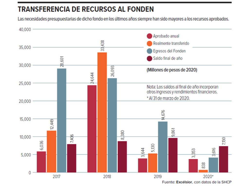 Por esta razón, siempre se reporta que el gobierno, vía el ramo 23, termina transfiriendo mayores recursos a los presupuestados al fideicomiso.