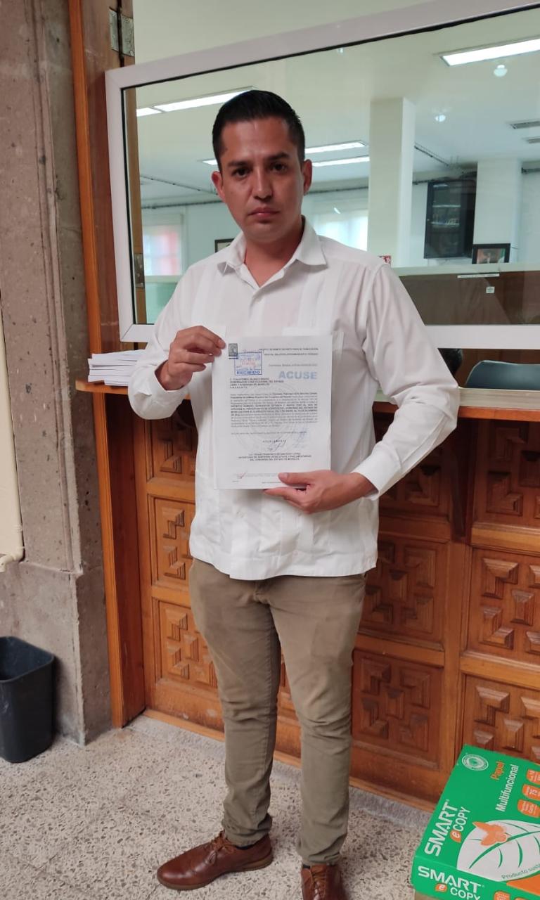 Por instrucciones del presidente de la Mesa Directiva, Francisco Erik Sánchez Zavala, el secretario de Servicios Legislativos y Parlamentarios, César Francisco Betancourt López, entregó en la Oficina de la Gubernatura el Paquete Económico 2023, aprobado por las y los diputados el pasado 26 de octubre, para su publicación por el Poder Ejecutivo en el Periódico Oficial “Tierra y Libertad” Órgano de Difusión del Gobierno del Estado.