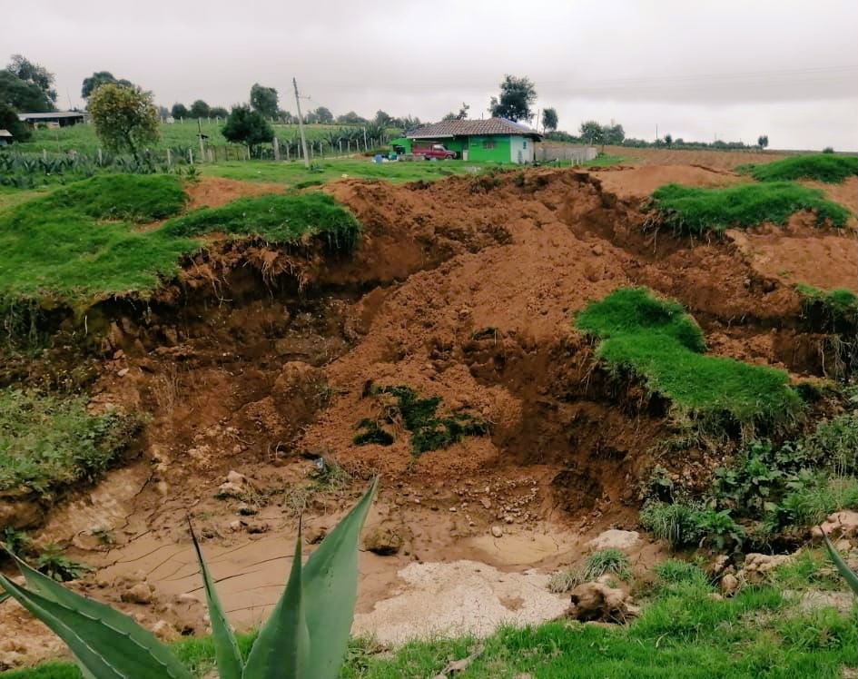 La excavación de una cisterna a cielo abierto provocó un nuevo socavón en Puebla, esta vez en la Sierra Norte, en el municipio de Ahuazotepec; donde dejó trunco un camino rural y están en riesgo una casa y un terreno de cultivo.