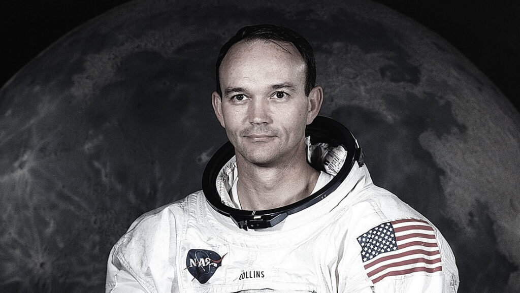 Collins participó en este vuelo que marcó en 1969 un hito histórico en la exploración espacial: la llegada del hombre a la Luna. A diferencia de los restantes tripulantes -Neil Armstrong y Buzz Aldrin- Collins se quedó pilotando el módulo orbital y no llegó a pisar la superficie lunar, por lo que a menudo es referido como «el astronauta olvidado».