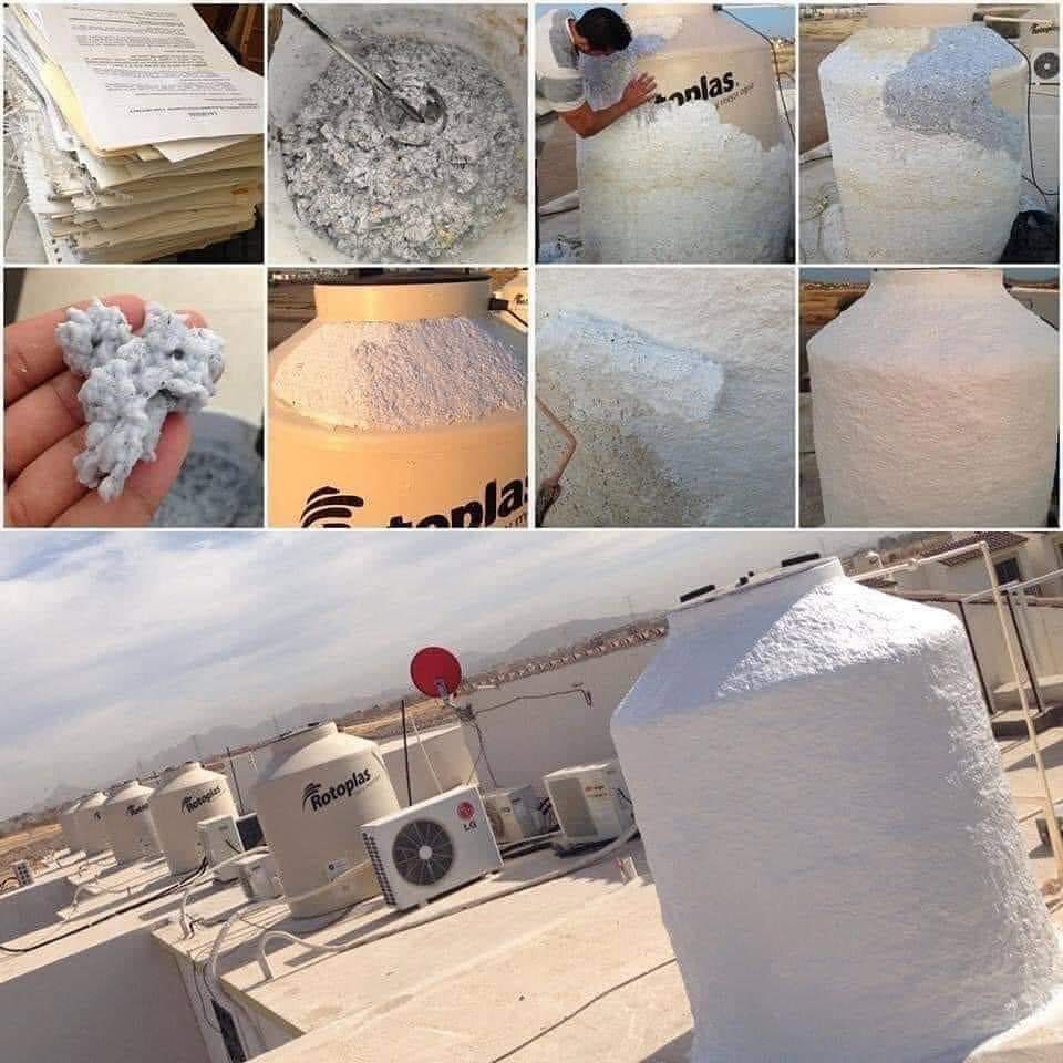 En la publicación documentó su “aislante de calor” sobre su tinaco, el cual consiste en cubrirlo con papel reciclado, dándole una capa de impermeabilizante que le ayudará a que, la próxima vez que se bañe, el agua ya no salga caliente.
