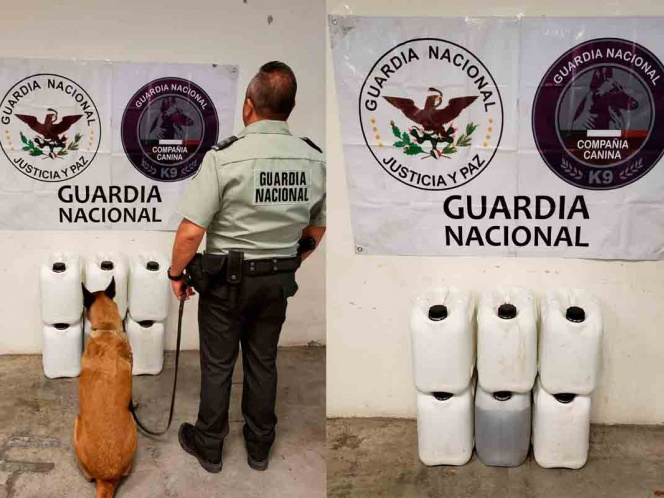 Elementos de la Guardia Nacional detuvieron a una persona que transportaba un aproximado de 10 kilos 500 gramos de metanfetamina en extintores de fuego.