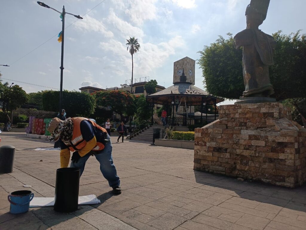 Entre las acciones, destinadas a dar una buena imagen del mobiliario urbano ante la próxima temporada de vacaciones de verano, están la pintura de jardineras, kiosco, bancas y la colocación de equipo para el funcionamiento de las fuentes ubicadas en la Plaza Centenario.