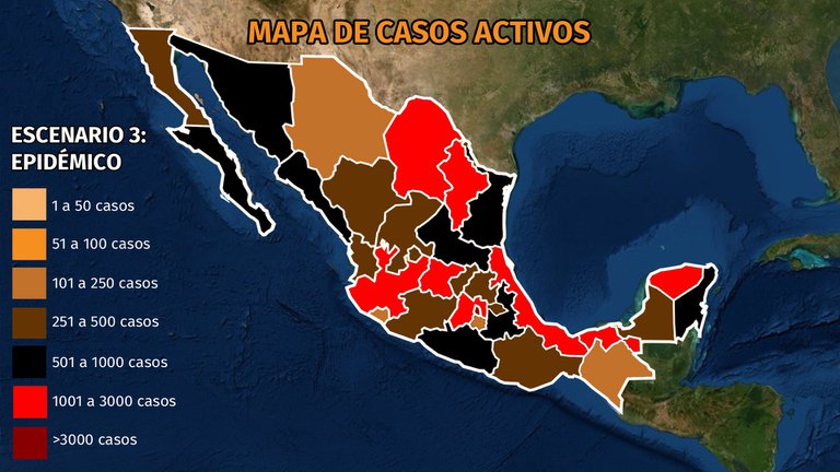 Las cuatro entidades con el mayor registro de casos acumulados son la Ciudad de México, Estado de México, Tabasco y Puebla. Por el contrario, Colima, Zacatecas, Baja California Sur y Nayarit son las cuatro con el menor número de contagios.
