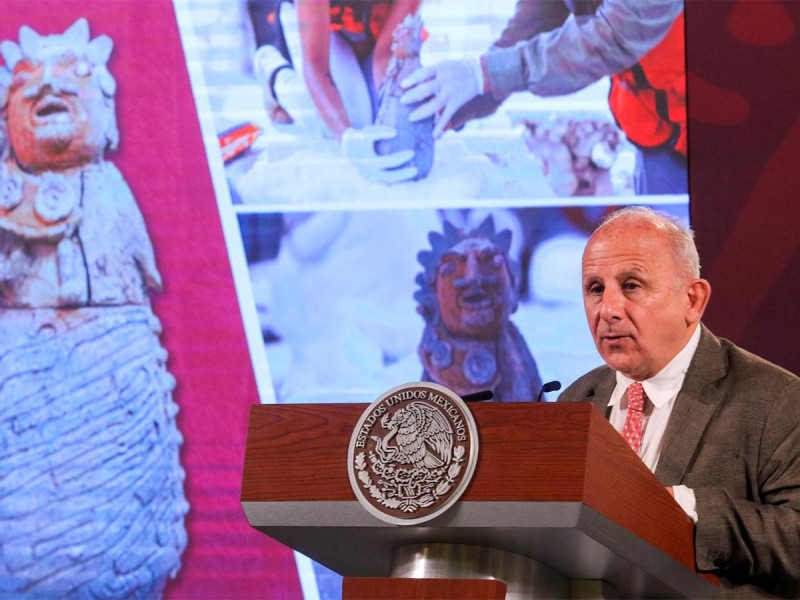 Diego Prieto, director del Instituto Nacional de Antropología e Historia (INAH), presentó su informe en la conferencia de prensa en Palacio Nacional, donde detalló que se tiene ya un avance del 90 por ciento del salvamento arqueológico en el Tramo 6 del Tren Maya.