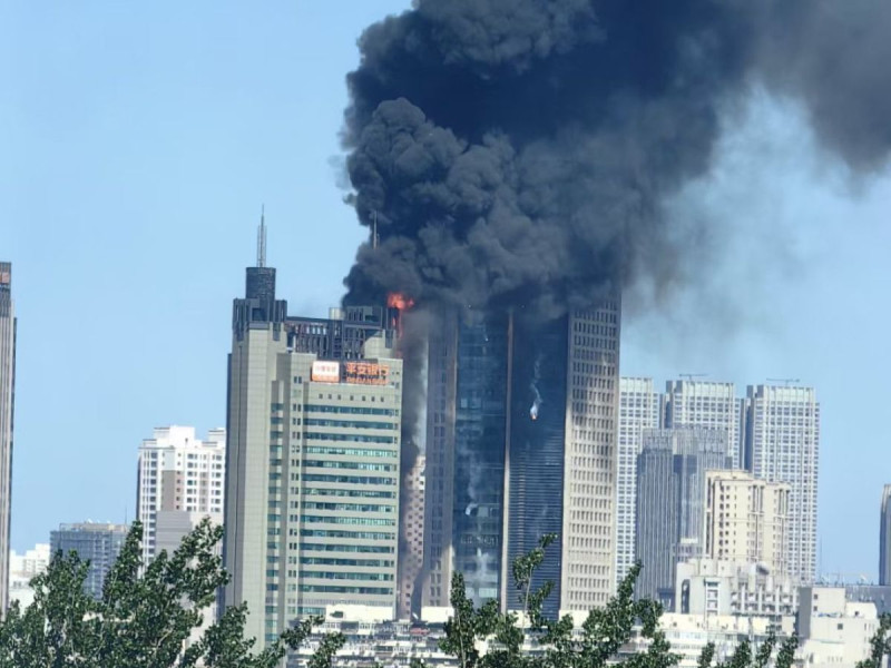 Un incendio en el edificio Xintiandi, ubicado en el distrito de Nankai de Tianjin (China) se desató durante la tarde del martes (tiempo local).