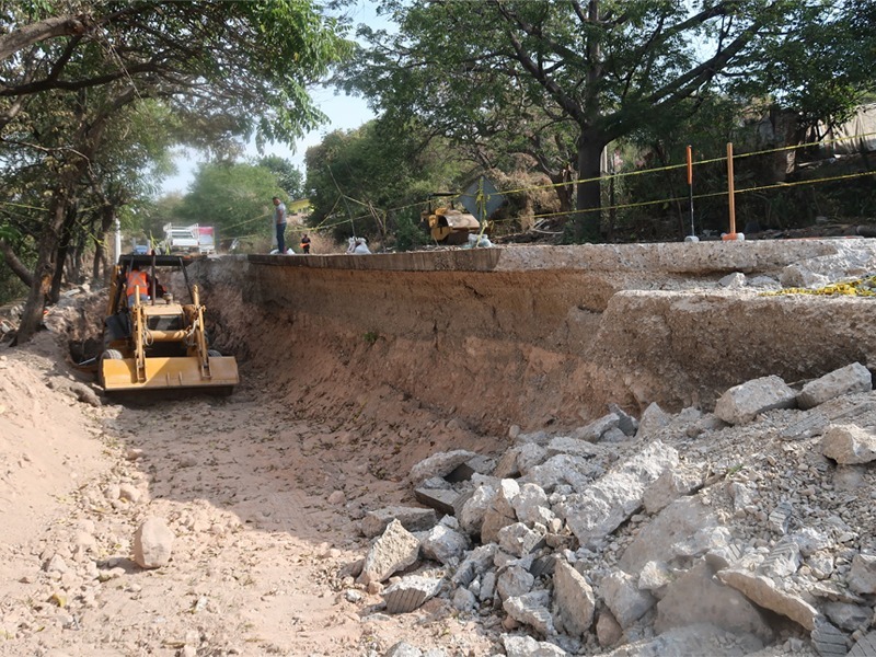 De momento los trabajos constan de la construcción de un muro de contención a base de mampostería y concreto armado, relleno de material de terracería y sustitución de losa de concreto de 20 centímetros de espesor.