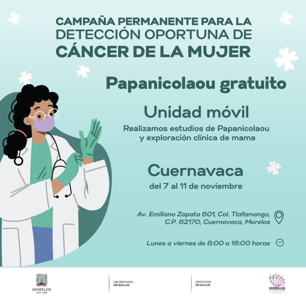 Servicios de Salud de Morelos (SSM) informó que instalaron unidades móviles de citologías y mastografías en el municipio de Cuernavaca, para detectar y prevenir el cáncer de cuello uterino y de mama.