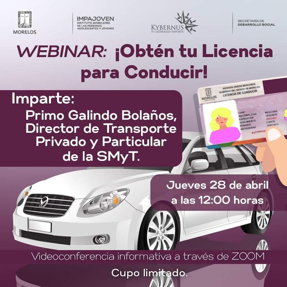 En ese sentido, la instancia juvenil llevará a cabo dos sesiones, la primera se realizará el 28 de abril y será dirigida a la población que busque asesoramiento para tramitar la Licencia de Conducir, será impartida por Primo Galindo Bolaños, director de Transporte Privado y Particular, de la Secretaría de Movilidad y Transporte (SMyT).