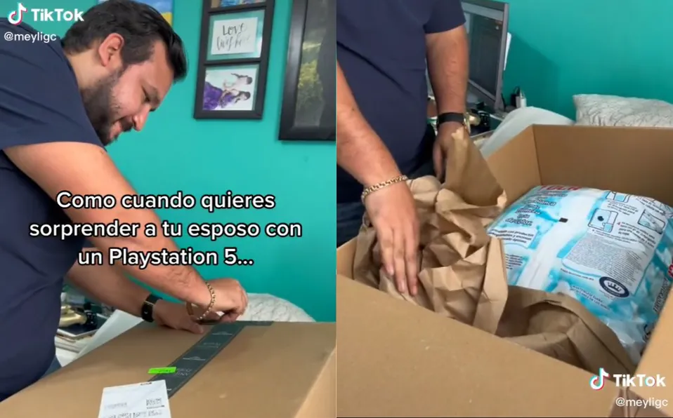 Según el clip que se volvió viral en TikTok, la joven había comprado una consola de videojuegos como regalo para su novio, sin embargo, se llevaron una gran sorpresa al abrir la caja que había llegado por paquetería. «Como cuando quieres sorprender a tu esposo con una PlayStation 5.