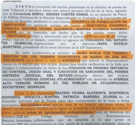 En esta primera audiencia oral, la ex legisladoras deberán acudir el próximo viernes 29 de marzo, en los Juzgados de Primera Instancia de Control, Juicio Oral y Ejecución de Sanciones del Primer Distrito Judicial del Estado.