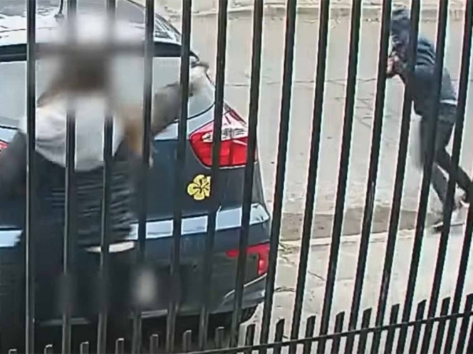 Gracias al video se puede ver a uno los asaltantes caer al suelo tras los primeros disparos, para después salir corriendo del lugar.