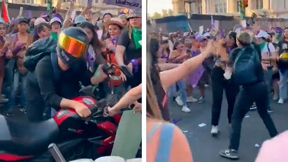 El sujeto fue arrestado después de agredir a varias participantes de la manifestación feminista mientras intentaba atravesar la multitud con su motocicleta.