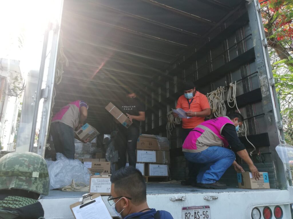 Los cinco consejos distritales del Instituto Nacional Electoral en Morelos, recibieron el cargamento de documentación con emblemas y materiales electorales custodiados del Proceso Electoral Concurrente 2020-2021.