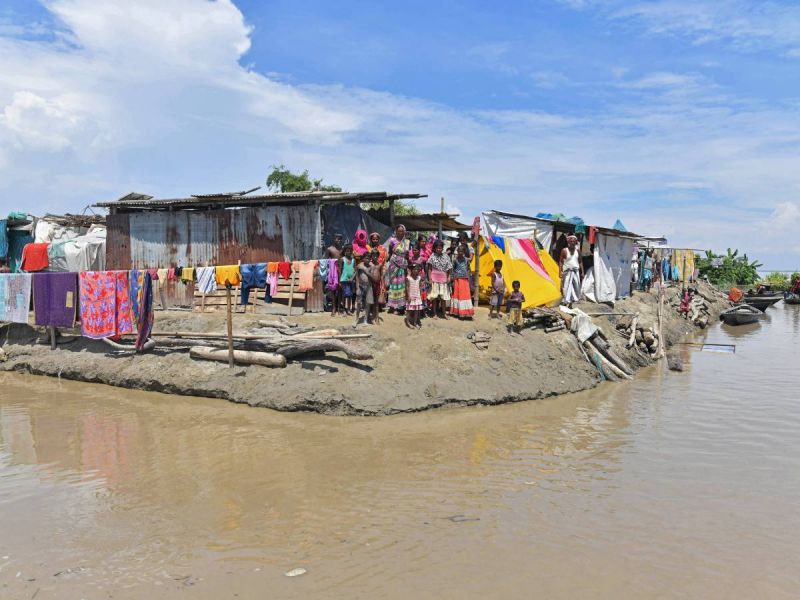 Cientos de miles de personas están varadas en sus aldeas, incluso algunas sobre los techos de sus viviendas, o huyeron hacia terrenos más altos en el noreste de India debido a las inundaciones por la crecida de los ríos provocada por lluvias torrenciales.