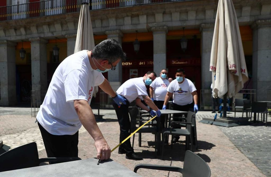 Tras diez semanas de confinamiento, los madrileños se reencontraron con sus apreciados bares, aunque solamente en las terrazas, mientras los habitantes de otras zonas de España con menos incidencia del virus pueden desde ya bañarse en la playa.