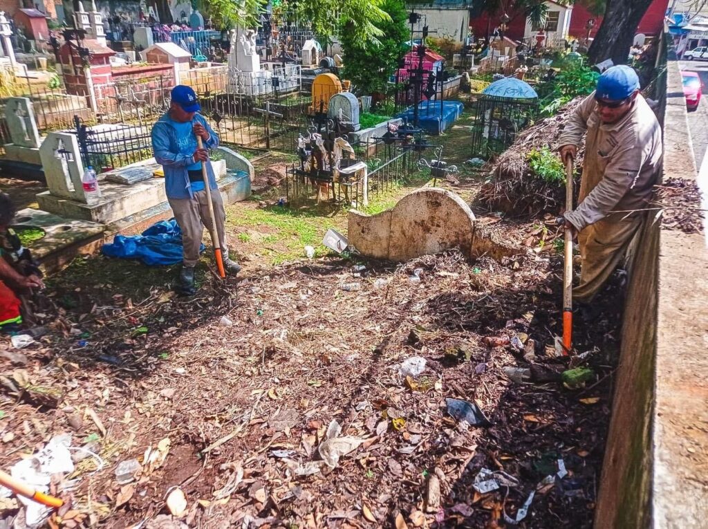 El secretario de Desarrollo Sustentable y Servicios Públicos, Israel Albavera Vázquez, informó que en los ocho panteones municipales han hecho el retiro de cacharros, limpiando y aplicando cloro que es manejable para el agua y no afecta la salud de los usuarios a las piletas, así como el desmalezado de las hierbas que están realizando con maquinaría.