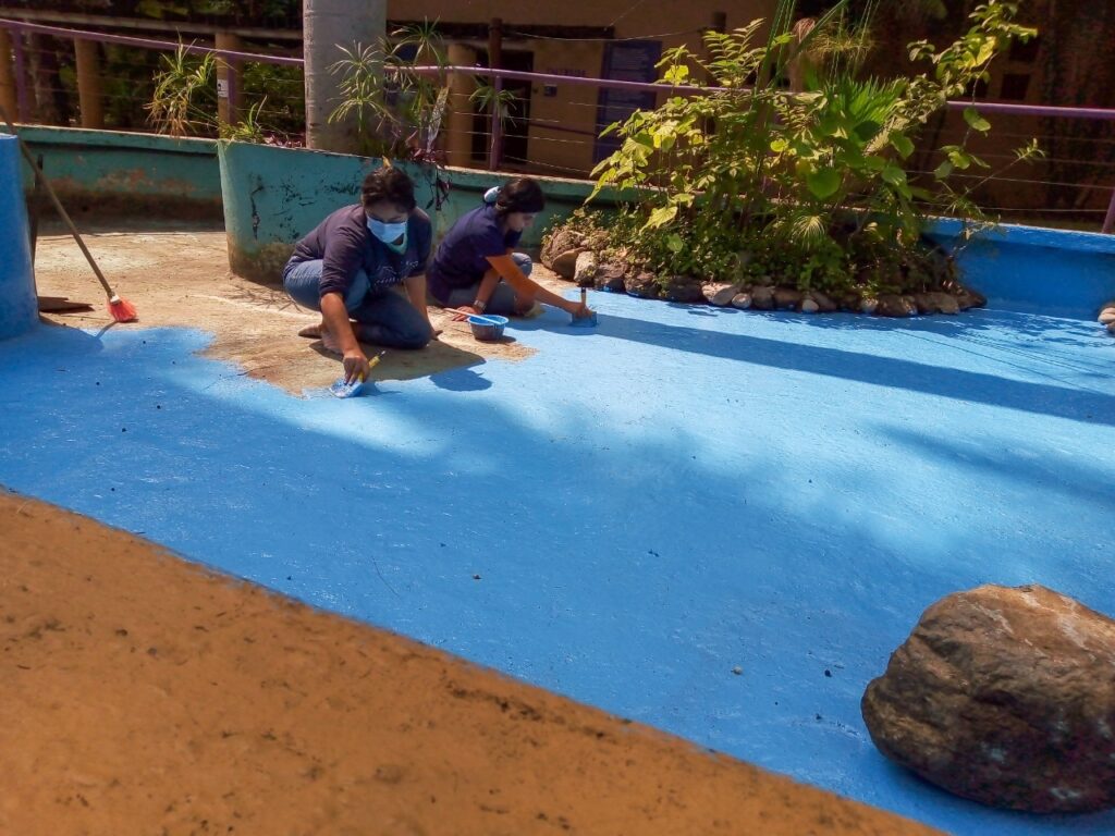 Para mejorar las condiciones de bienestar de 11 tortugas que están bajo cuidado y protección del área de veterinaria del Parque Barranca Chapultepec, en Cuernavaca, personal realiza trabajos de pintura del tortugario.