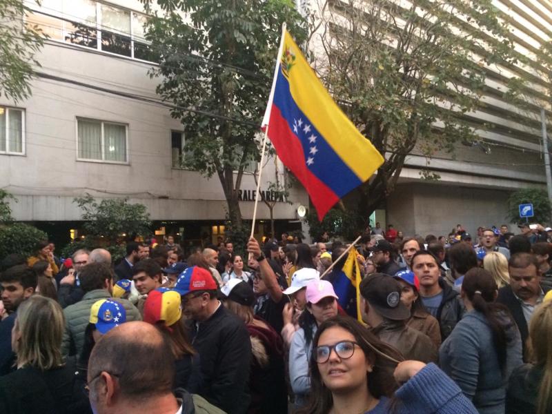La comunidad venezolana que vive en la Ciudad de México, acudió a la Embajada de su país para manifestarse entre gritos de «sí se puede» y «arriba Venezuela».