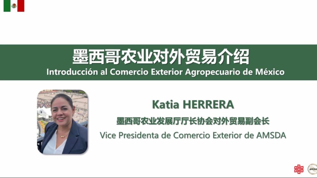 La titular de la Secretaría de Desarrollo Agropecuario (Sedagro), en su calidad de vicepresidenta de Comercio Exterior de la Asociación Mexicana de Secretarios de Desarrollo Agropecuario (AMSDA), Katia Isabel Herrera Quevedo, participó en el Seminario Empresarial de Cooperación México-China, organizado por la Asociación China para la Promoción de la Agricultura Internacional de Cooperación (CAPIAC).