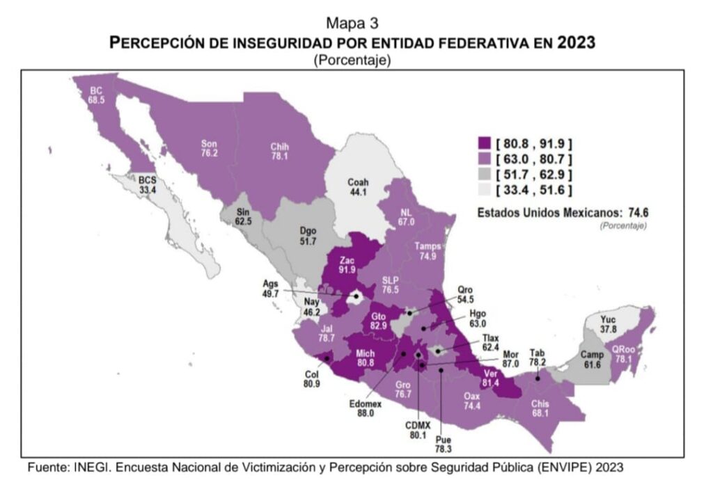 Morelos es la tercera entidad con mayor percepción de inseguridad pública entre la población, sólo después de Zacatecas y Estado de México, según el Instituto Nacional de Estadística y Geografía (INEGI).