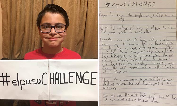 Esta idea de Rubén Martínez, un menor que vive en El Paso, consiste en hacer un acto de caridad por cada persona que murió en el Walmart, ubicado del centro comercial Cielo Vista de la mencionada localidad estadounidense.