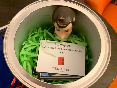 Para su sorpresa, cuando pasó por Woody, los empleados del Fiesta Inn se lo entregaron de una manera muy original con el objetivo de sacarle una sonrisa a Damián.