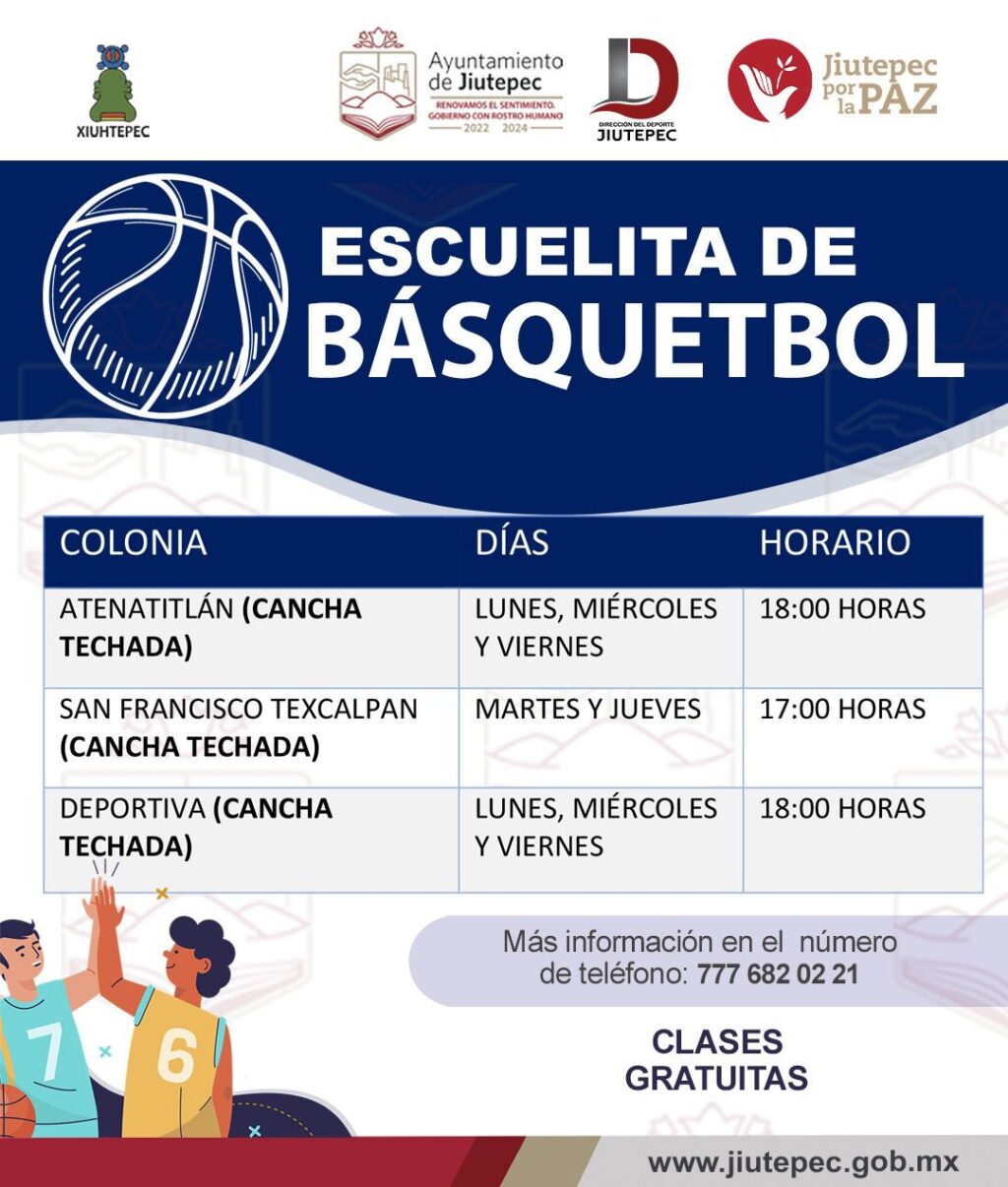 Para preservar la salud, promover el bienestar físico y mental de niñas, niños, así como jóvenes del municipio de Jiutepec, la Dirección del Deporte del Gobierno con Rostro Humano ofrece clases gratuitas de básquetbol para los referidos grupos de la población en las colonias Atenatitlán, San Francisco Texcalpan y Deportiva.