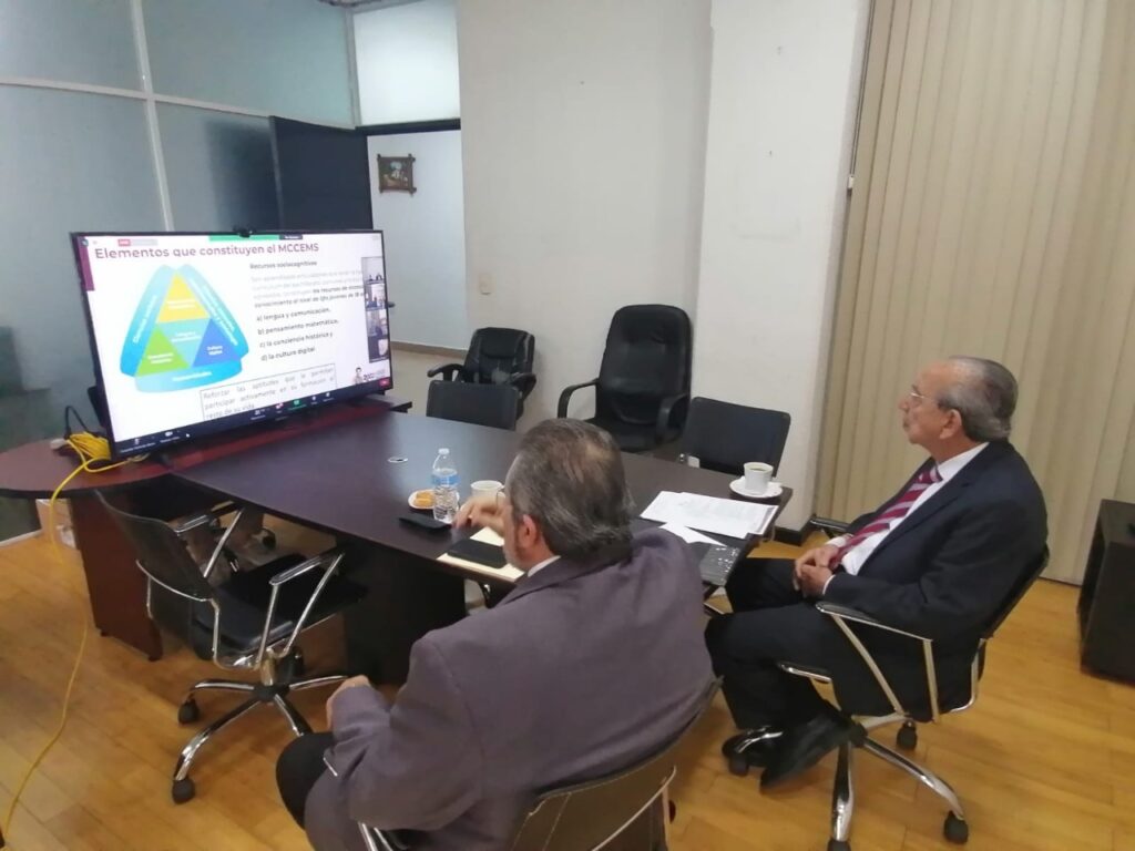 Durante la transmisión, a la que también asistió Hiram Mina Valdés, director general de Educación Media Superior y Superior (DGEMSS), se desarrolló el tema «El Nuevo Marco Curricular en Educación Media Superior», donde se abordaron temáticas de: recursos sociocognitivos, escuela abierta y orientadora, formación socio emocional.