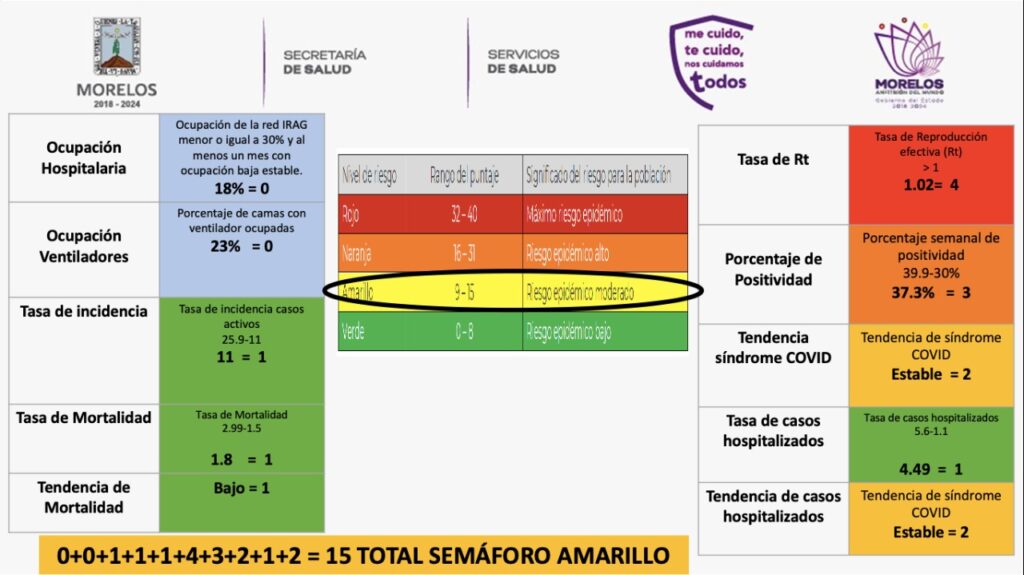 El director general de Coordinación y Supervisión de la Secretaría de Salud indicó que la suma del simulador del semáforo de riesgo COVID-19 que se realiza en la entidad da un total 15 puntos, lo que significa que el estado permanecería por dos semanas más en color amarillo.