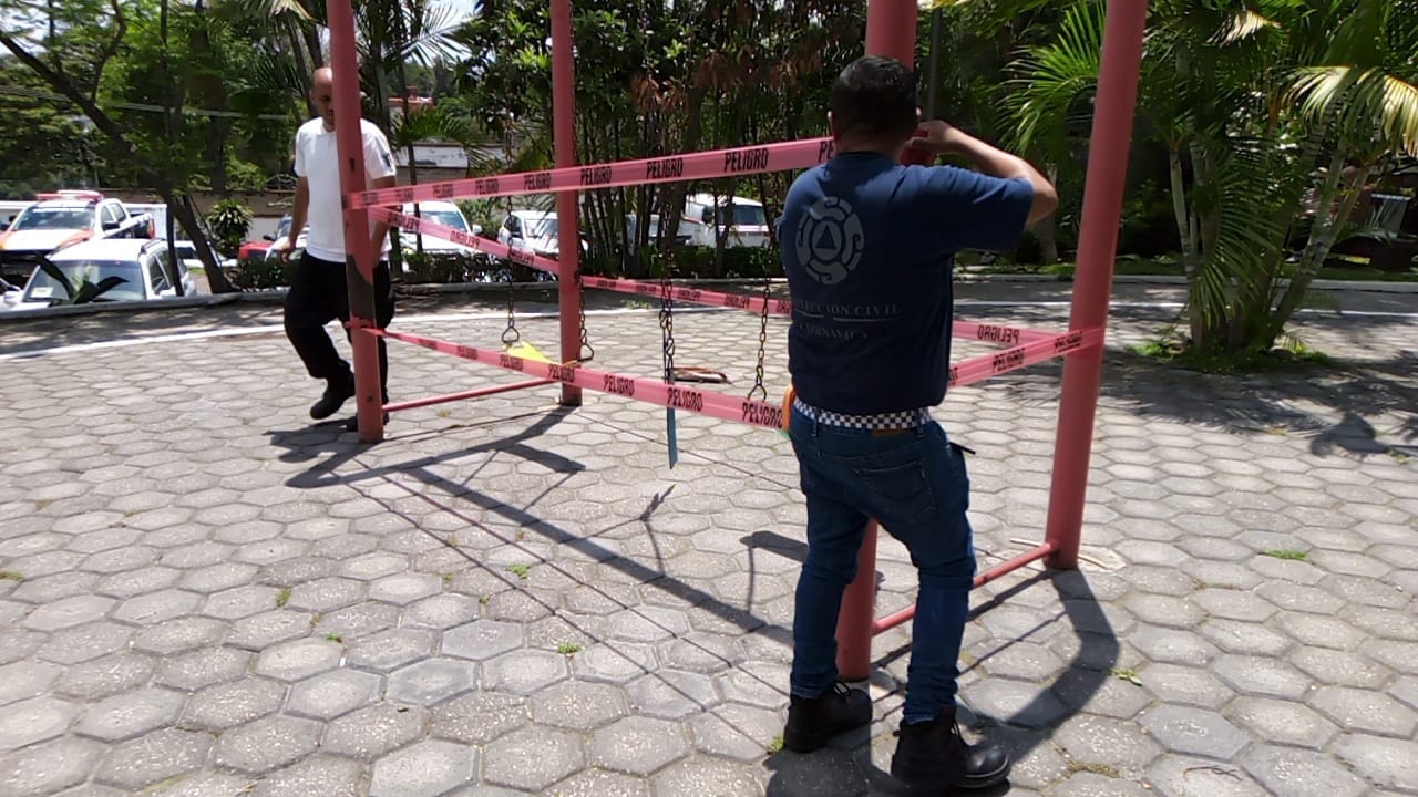 Durante el recorrido, en el espacio donde se encuentran instalados los juegos infantiles personal de emergencias encontró que, por falta de un mantenimiento adecuado desde hace varios meses, estos aparatos que podrían poner en riesgo a niñas y niños que los llegan a utilizar de manera cotidiana.