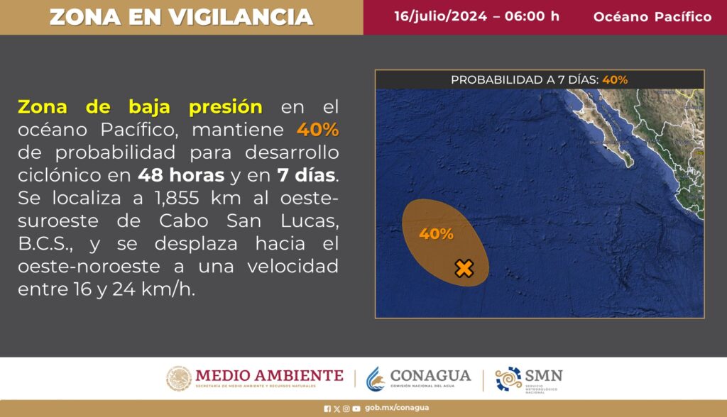 Después del Huracán Aletta, según la lista del SMN, el próximo sistema sería Bud, el cual podría convertirse en huracán, aunque esto aún no es seguro. Por ahora, la Zona de Baja Presión se encuentra en el Océano Pacífico, a 1,855 km al oeste-sureste de Cabo San Lucas, Baja California Sur, indicando cierta proximidad a las costas mexicanas.