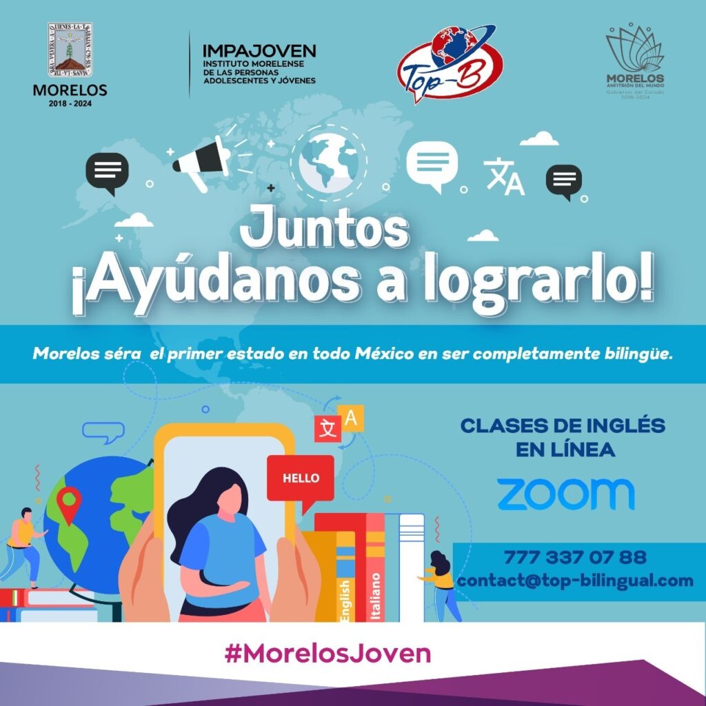 A través de un acuerdo de colaboración con la escuela Top Bilingual Cuernavaca, el Instituto Morelense de las Personas Adolescentes y Jóvenes (Impajoven) invita a juventudes interesadas en inscribirse al Curso de Inglés Virtual impartido por docentes de dicha instancia educativa.