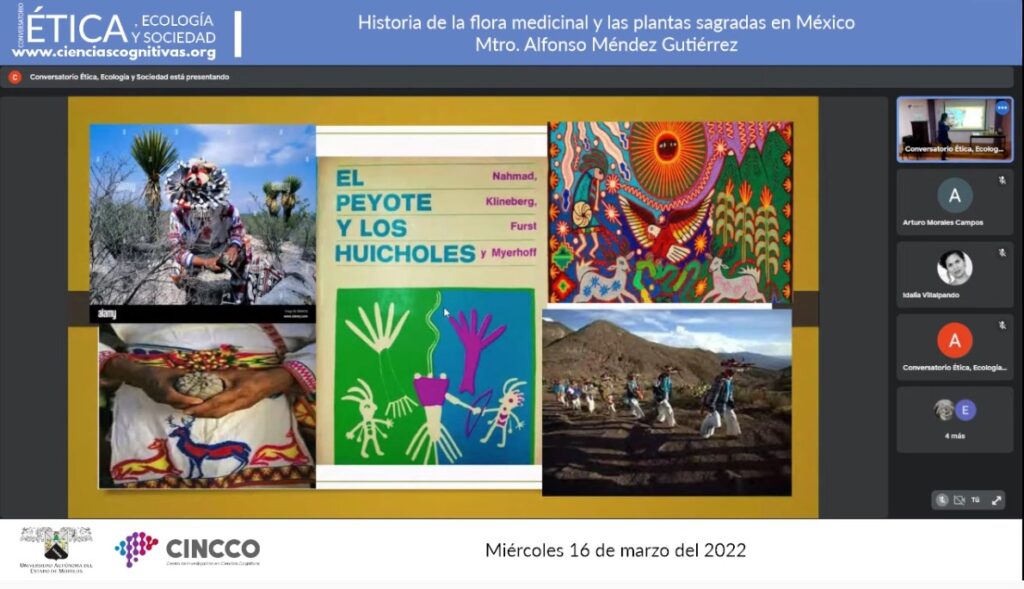 Alfonso Méndez participó el pasado 16 de marzo en una charla con el tema «Historia de la Flora Medicinal y las Plantas Sagradas de México», realizada en el Centro de Investigación en Ciencias Cognitivas (Cincco), donde centró su participación en las plantas psicotrópicas y sus efectos curativos, como la marihuana y la cannabis.