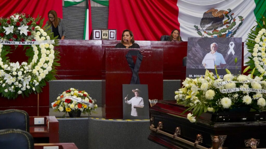 Al expresar las sentidas condolencias a su querida familia, a su esposa Doña Amparo, a toda su descendencia, y a nuestra apreciada compañera diputada Tania Valentina Rodríguez Ruíz a nombre de la LV Legislatura por la triste partida del maestro Roberto Rodríguez Navarro, el presidente de la Mesa Directiva Francisco Erick Sánchez Zavala, destacó que “su legado es parte de la cultura del Morelos del Siglo XX, del Siglo XXI y de siempre”.