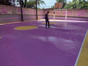 Por su parte, la remodelación de la cancha de usos múltiples ubicada en la colonia El Charco del municipio de Tetecala está siendo concluida y contará con juegos infantiles, kit de gimnasio, bancas arquitectónicas tipo lingote, balizamiento de rayas para el trazo de la cancha y alumbrado con reflectores tipo led.