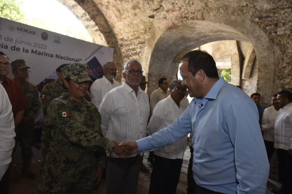 Este miércoles, en el marco del 80 Aniversario del Día de la Marina, el gobernador Cuauhtémoc Blanco Bravo convivió con marinos asignados a Morelos, a quienes hizo un amplio reconocimiento, ya que con su valor y fidelidad garantizan la soberanía nacional y la seguridad interior.