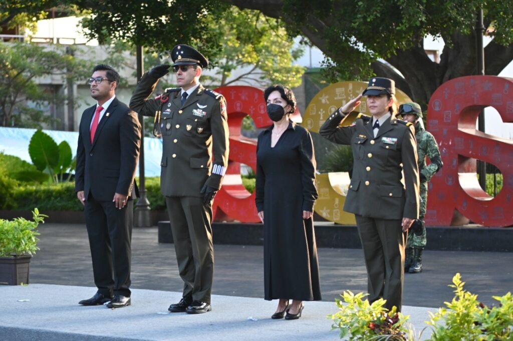 Luego de entonar el glorioso Himno Nacional Mexicano, el General de Brigada Diplomado de Estado Mayor Jorge Antonio Maldonado Guevara, comandante de la 24/a Zona Militar, firmó el Libro de Ceremonias Cívicas 2022.