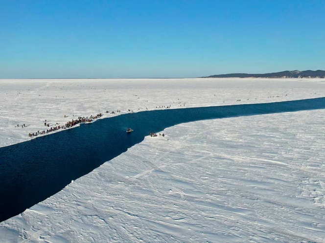 Los servicios de emergencia de Rusia rescataron a 536 pescadores que quedaron varados en un témpano de hielo gigante que se separó de la isla de Sajalín, en el este de Siberia, según las autoridades.