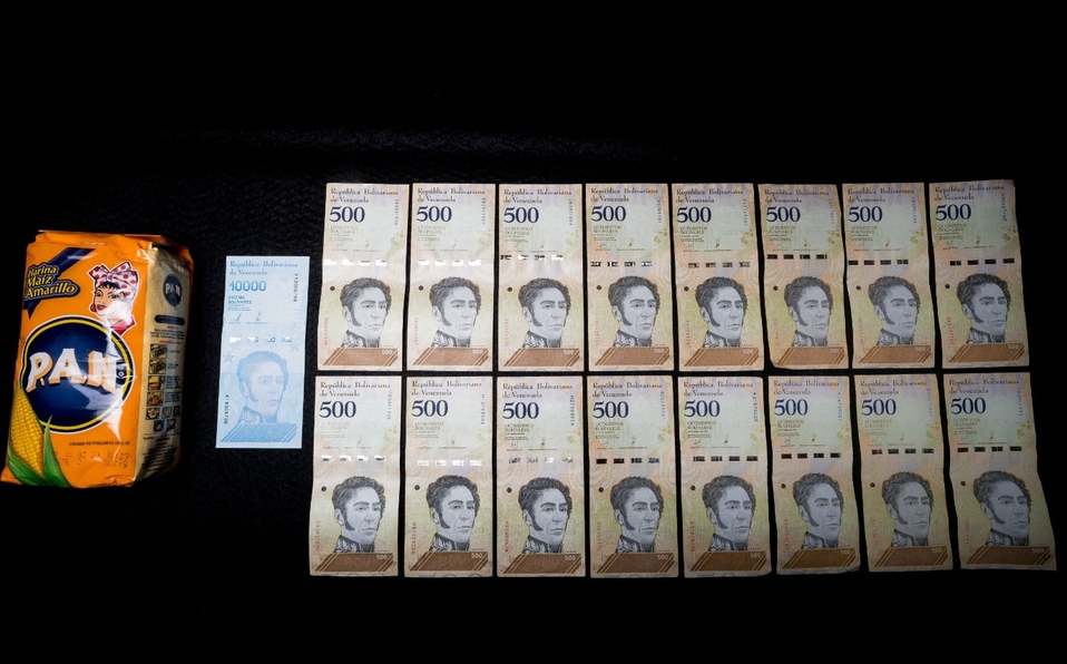 Con el dólar estadunidense alrededor de los 20 mil bolívares, el salario mínimo de 40 mil bolívares que fija el gobierno se traduce en 2 dólares mensuales, una cantidad que no alcanza para comprar un kilo de carne o un cartón de huevos.